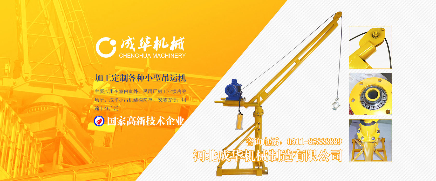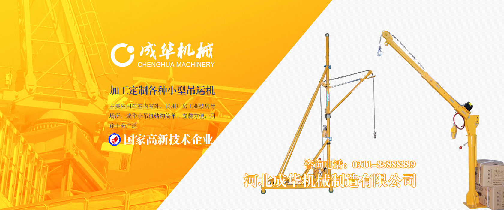 河北成華機械制造有限公司為國家高新技術企業(yè),旗下吊運機制造廠是家專業(yè)生產(chǎn)制造便攜式小吊機、手提式小吊機附屬工廠,我廠產(chǎn)品主要應用在室內室外,民用廠房工業(yè)樓房等場所。成華小吊機結構簡單、安裝方便,用途十分廣泛,小吊機產(chǎn)品被廣泛應用于機械制造、電子、汽車...